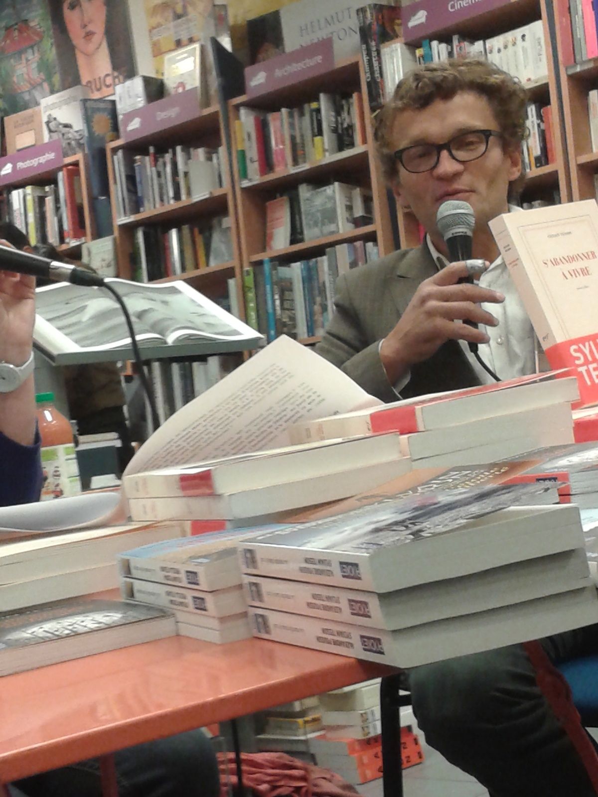 Dimanche 12 janvier. Pour la première rencontre / dédicace de l'année, la librairie Le Divan fait salle comble. Un nombreux public a pris place depuis déjà une bonne demi heure lorsque Sylvain Tesson arrive, un peu déboussolé dit-il par l'horaire si matinal (11h30 !) de cet événement. Auditoire attentif, déjà conquis, autant par ses livres que par le personnage vraiment pas ordinaire.